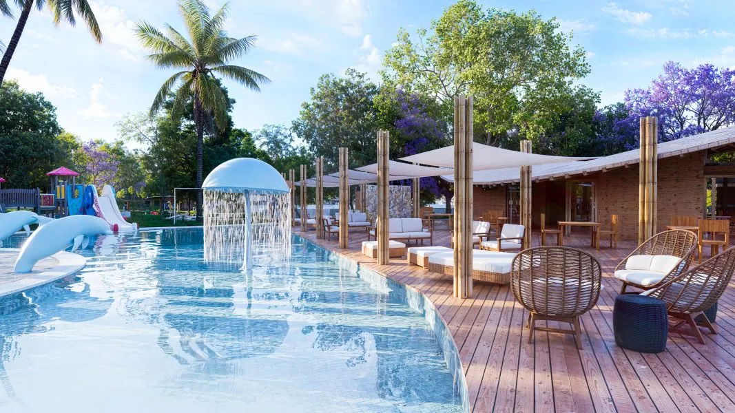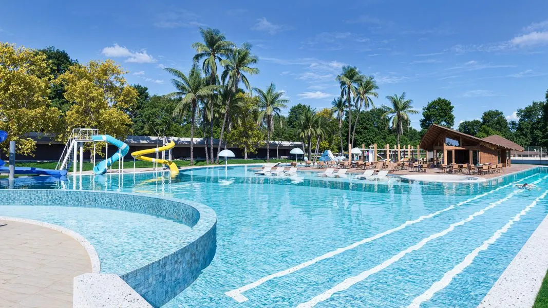 Com piscina semiolímpica de 50m, 3 toboáguas emocionantes (adulto e infantil), área rasa e deck molhado para toda a família.